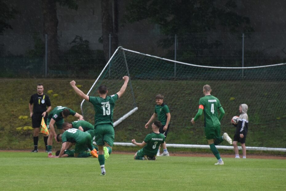 Gole Bartosza Giełażyna i Jakuba Konopki dały zwycięstwo 2:0 nad Sokołem Ostróda. Na finiszu sezonu pozostaje przypieczętować awans do III ligi na wyjeździe z Olimpią Olsztynek.